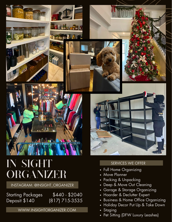 In Sight Organizer will resolve your organizational frustrations and make your declutter dreams come true. We provide solutions for EVERY space in your home and business anywhere in the DFW Metroplex.